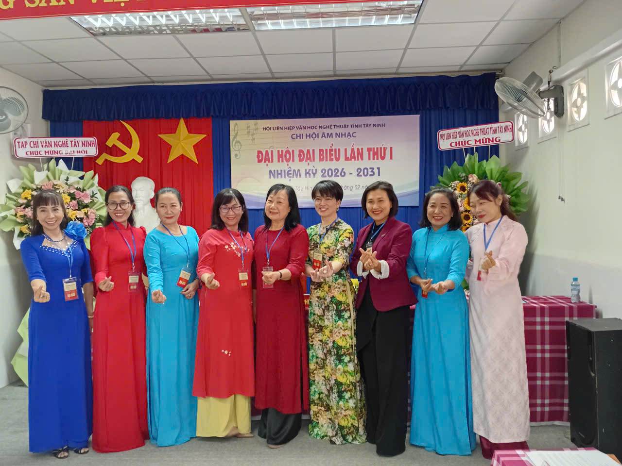 Chi hội Âm nhạc tỉnh Tây Ninh được thành lập theo Quyết định số 09/QĐ-HLHVHNT ngày 07/11/2025 của Hội Liên hiệp VHNT tỉnh Tây Ninh trên cơ sở sáp nhập Chi hội Âm nhạc và Múa tỉnh Tây Ninh với Chi hội Âm nhạc tỉnh Long An. Ban Chấp hành Chi hội gồm 8 người được chỉ định điều hành hoạt động trong giai đoạn chuyển tiếp, từng bước ổn định tổ chức, quy tụ hội viên, duy trì sinh hoạt chuyên môn và phong trào sáng tác. Trong nhiệm kỳ Chi hội đã xem xét kết nạp 18 hội viên mới, hiện nay chi hội có tổng số 103 hội viên, trong đó có 50 đảng viên, giới thiệu 5 hội viên kết nạp vào Hội NSVN, hiện có 20 hội viên Trung ương (âm nhạc và múa) tham gia sinh hoạt tại Chi hội.