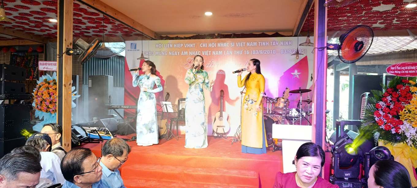 Thiết thực chào mừng kỷ niệm 80 năm Cách mạng Tháng Tám (19/8/1945-19/8/2025) và Quốc khánh Nước Cộng hòa XHCN Việt Nam 2/9; chào mừng Ngày Âm nhạc Việt Nam (ÂNVN) lần thứ 16 (3/9/2010-3/9/2025); sáng 3/9, tại phường Long An, Hội Liên hiệp VHNT tỉnh phối hợp Chi hội Nhạc sĩ Việt Nam (NSVN) tỉnh Tây Ninh tổ chức buổi Họp mặt kỷ niệm ngày ÂNVN nhằm ôn lại truyền thống và động viên anh em làm công tác sáng tác, hoạt động trong lĩnh vực âm nhạc tỉnh nhà tiếp tục đóng góp vào lĩnh vực âm nhạc nói riêng, vào sự nghiệp VHNT tỉnh nhà nói chung.